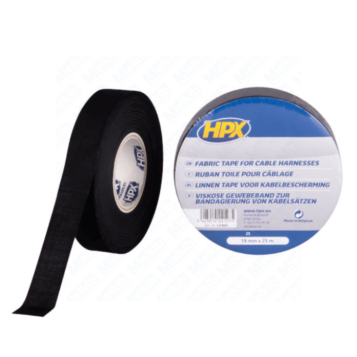 HPX 52900 černá látková izolační páska, 19 mm x 25 m pro ochranu kabelů, flexibilní, odolná vysokým teplotám, s lepidlem ze syntetického kaučuku pro automobilový průmysl a průmysl