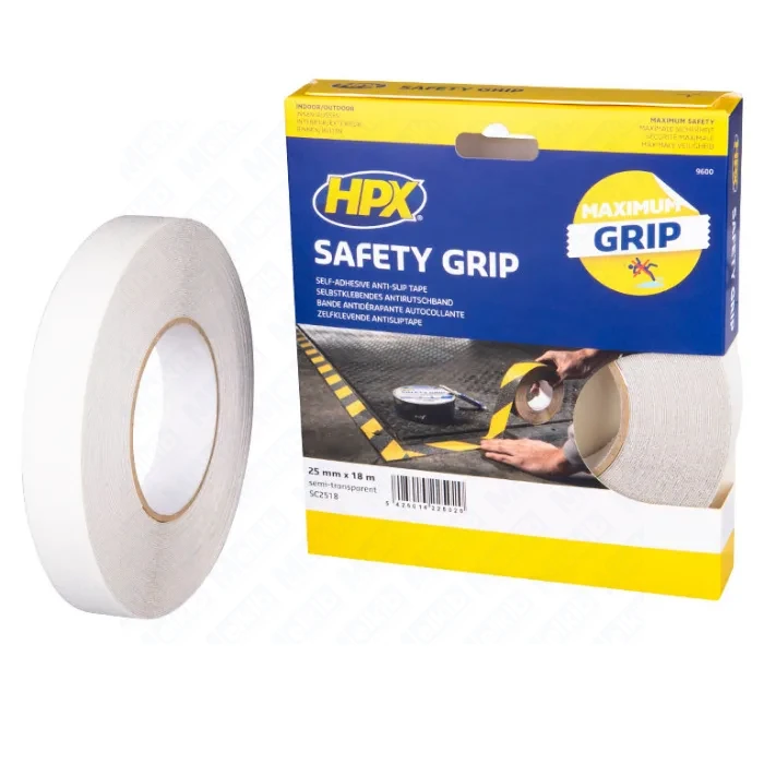 HPX protiskluzová páska poloprůhledná 25 mm x 18 m SC2518 je samolepicí páska ze série Safety Grip 9600 určená k zajištění hladkých povrchů proti uklouznutí. Díky vysoké přilnavosti a odolnosti vůči vodě a olejům účinně zvyšuje bezpečnost v intenzivně využívaných zónách jak v průmyslových objektech, tak v domácnostech. Poloprůhledná barva zajišťuje nenápadný vzhled a současně výrazně zlepšuje přilnavost povrchu.