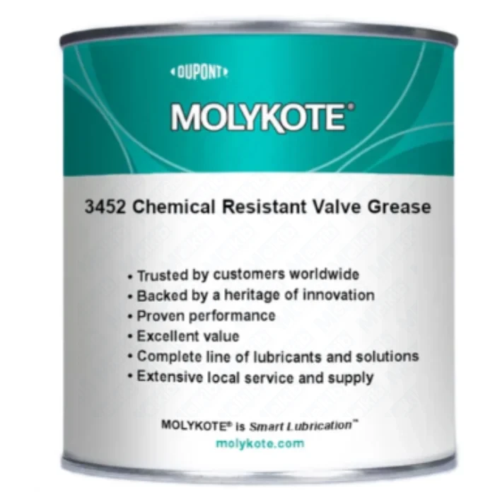 MOLYKOTE 3452 Chemical Resistant Valve Grease 1 kg je fluorosilikonové mazivo a těsnicí prostředek pro armatury, navržené pro provoz v korozivním prostředí a při vysokých teplotách. Díky konzistenci NLGI 3 účinně maže a utěsňuje ventily, hřídele a ucpávky, a odolává vodě, palivům, olejům i mnoha rozpouštědlům.