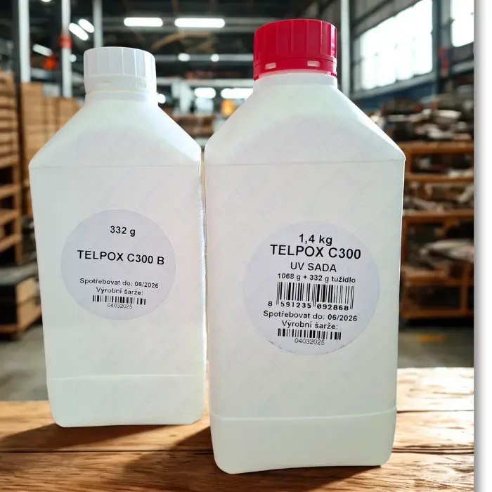 TELPOX C300 UV je profesionální dvousložková epoxidová pryskyřice s vysokou optickou čirostí a odolností proti UV záření. Obsahuje složku A (1068 g čiré epoxidové pryskyřice) a složku B (332 g aminového tvrdidla). Na rozdíl od běžných systémů umožňuje zalévání až do 10 cm v jedné vrstvě. Je ideální pro stoly typu „river table“, šperky, formy, technické odlitky a zalévání elektroniky.