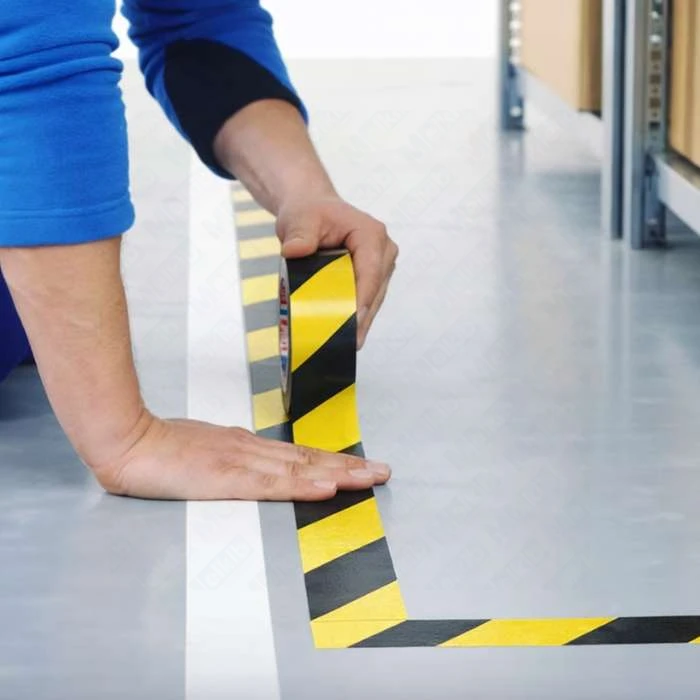 U značení podlah je klíčová odolnost a dlouhodobá čitelnost. Páska je voděodolná a odolná vůči UV záření a povětrnostním vlivům. Měkké PVC spolu s vlastnostmi pásky podporuje odolnost vůči chemikáliím a oděru, což je důležité v místech s vyšším mechanickým namáháním.