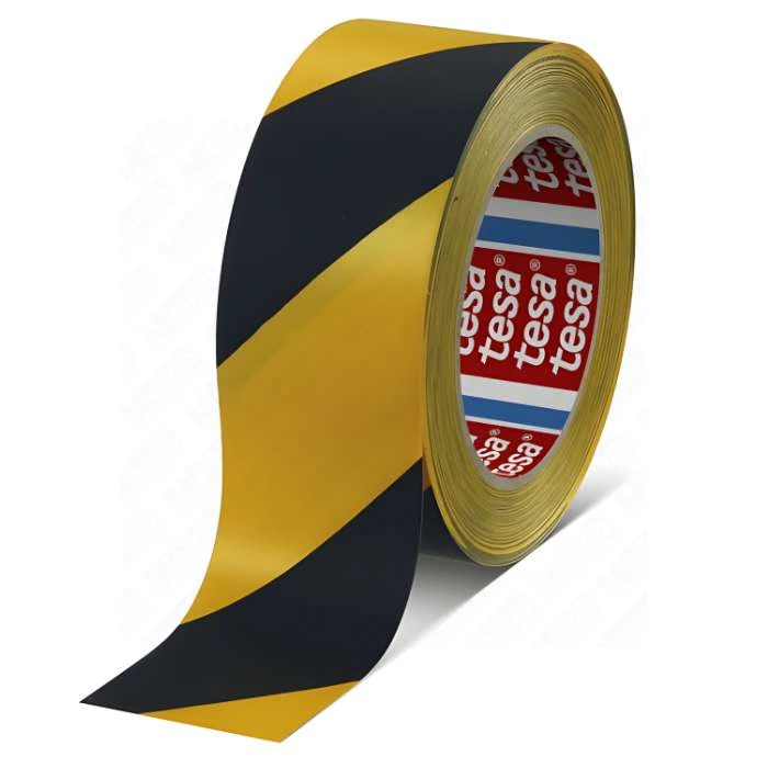 TESA | Páska pro značení podlah TESAFLEX 4169 PV3 | 187 µm | černo-žlutá je odolná podlahová páska z měkčeného PVC určená pro dlouhodobé značení zón a vymezení prostor. Využívá se tam, kde musí být značení dobře viditelné a stabilní v čase – v komunikačních trasách, průchodech a pracovních zónách.