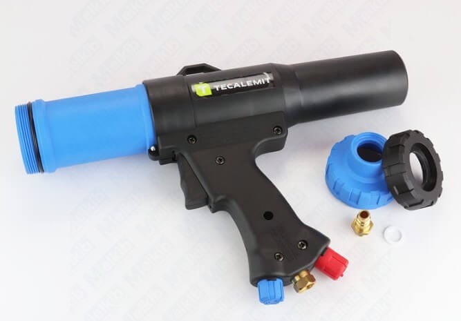 Teleskopický dávkovač pro jednosložkové kartuše, multifunkční zařízení používané pro všechny typy tmelů, lepidel a tmelů ve spreji. Pneumatická pistole. Má teleskopický válec a ventily, kterými se ovládá vzduch a materiál. Samostatné ovládání umožňuje přesné nastavení podle potřeby aplikace. Teleskopický válec zajišťuje vzduchotěsné oddělení tmelu a stlačeného vzduchu, což vede k rovnoměrnému rozdělení po natíraném povrchu bez vzduchových bublin. Objem 290 ml, 310 ml.