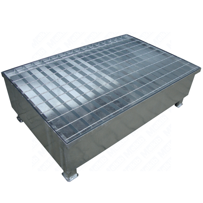Přepadová vana byla navržena s ohledem na maximální funkčnost. Je vybavena ocelovým pozinkovaným mřížkovým roštem s velikostí oka 68x76 mm a nohami vysokými 100 mm, umožňuje bezpečné uložení dvou 200litrových sudů a snadnou přepravu pomocí palety nebo vysokozdvižného vozíku.
