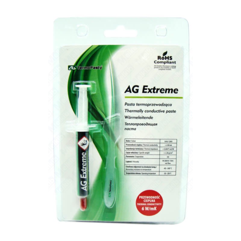 AG Extreme is an innovative thermal paste that provides exceptional thermal conductivity between various components, such as a heat sink, fan, CPU or GPU. This dielectric paste (i.e. non-conductive) guarantees protection against various electrical hazards, which is invaluable in a computer environment. Thanks to its ease of application, this product is hassle-free to use and can be applied to a variety of computer hardware components, including LEDs.