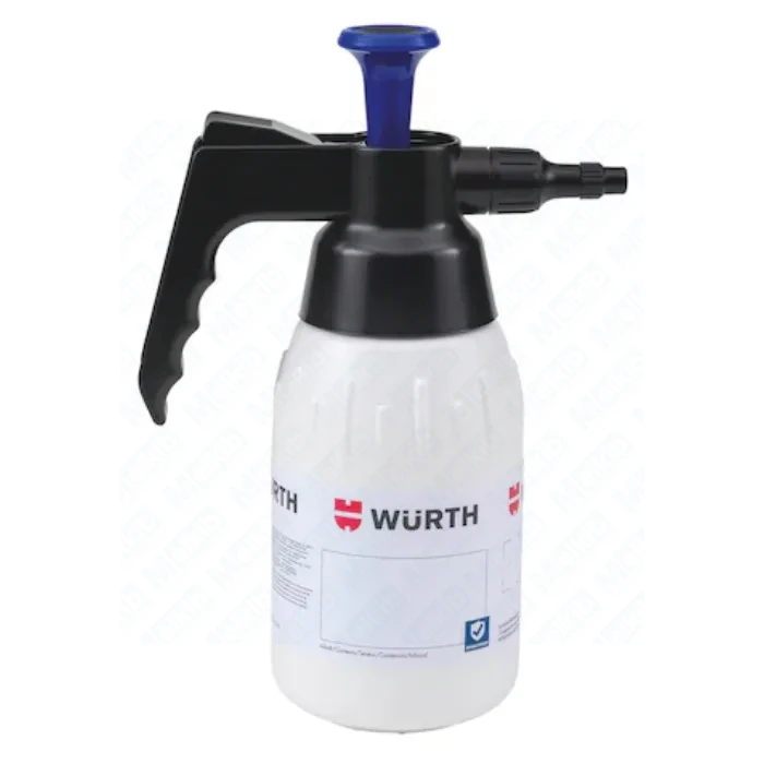 Alkali-resistant spray bottle, 1 L for convenient dispensing of liquid alkaline cleaners from cans and drums. The adjustable nozzle (mist/jet), ergonomic long-lever trigger and stable conical body make workshop and maintenance tasks easier. A dedicated label area lets you mark the contents and safety info.