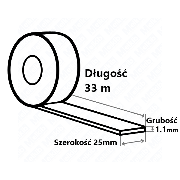 Double-sided grey acrylic tape Melkib 36/GRP110 1,1mm x 25mm x 33m professional for metals without coatings, plastic