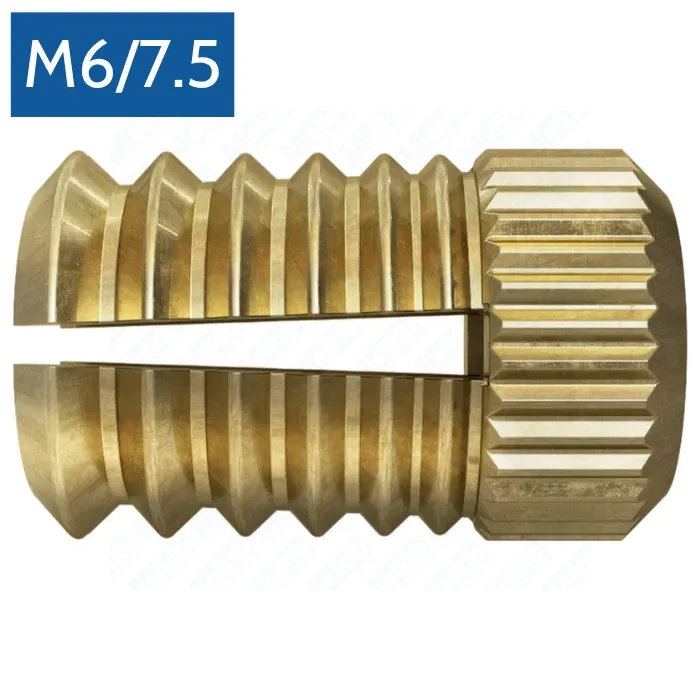 The Fischer PA 4 4 M 6/7.5 brass expansion fixing is designed for thin panels and solid masonry. With a small embedment depth (7.5 mm) and an internal M6 thread, it enables fast installation with standard metric screws.