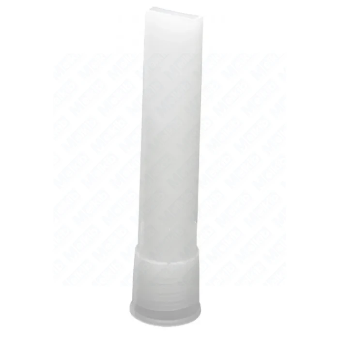 S15 Flat Bead Nozzle 2 × 10 mm (Melkib Flat bead nozzle 2x10 mm) is an HDPE cartridge nozzle designed for wide ribbon-bead application. It allows dispensing a bead of about 2 mm thickness and a typical 10–12 mm ribbon width, speeding up bonding and sealing on larger surfaces. The nozzle is compatible with standard S15 threaded components.