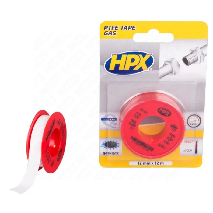 HPX PT1212 PTFE thread-sealing tape, water & gas, 12 mm × 12 m, 0.10 mm, −100…+260 °C