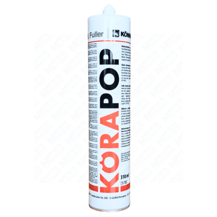 Korapop 225 is a black, high-quality, single-component adhesive and sealant that does not contain solvents. It is flexible and cures under the influence of moisture from the air, making it ideal for use in body construction, vehicle containers, ventilation and air conditioning technology and metal structures. It is characterized by excellent adhesion to glass, metals, paints, wood-based materials and many other materials.