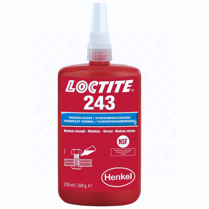 Loctite 243 is a medium removable adhesive to protect threaded connections against unscrewing and loosening due to vibrations. Traditional safety methods such as: spring washers, nuts with nylon insert, etc. over time, they loosen. Loctite 243 is resistant to vibrations and temperature changes - it does not lose stress as a result of them, which perfectly prevents loosening of joints.