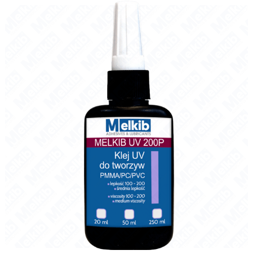 MELKIB UV 200P MB-0044 50 ml is a single-component adhesive cured with UV/VIS light (200–400 nm), designed for bonding PLEXI (PMMA). Light curing enables fast processing in applications where the bonding area can be illuminated.