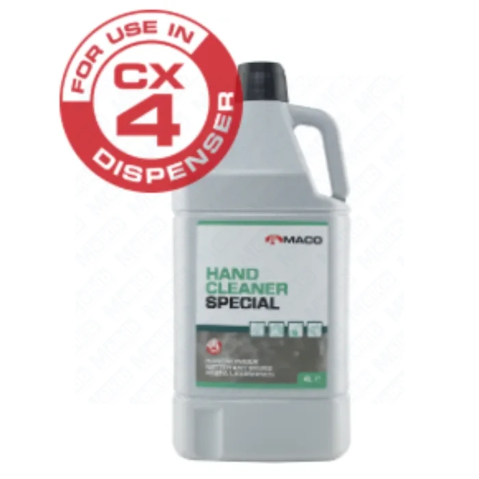 “Maco Special 4 L CX-4” is a solvent-free hand-cleaning gel with a natural walnut-shell scrub. It removes medium and heavy workshop soils while remaining skin-friendly (pH ~6–6.5). The 4-L cartridge fits the CX-4 wall dispenser for hygienic, convenient use.