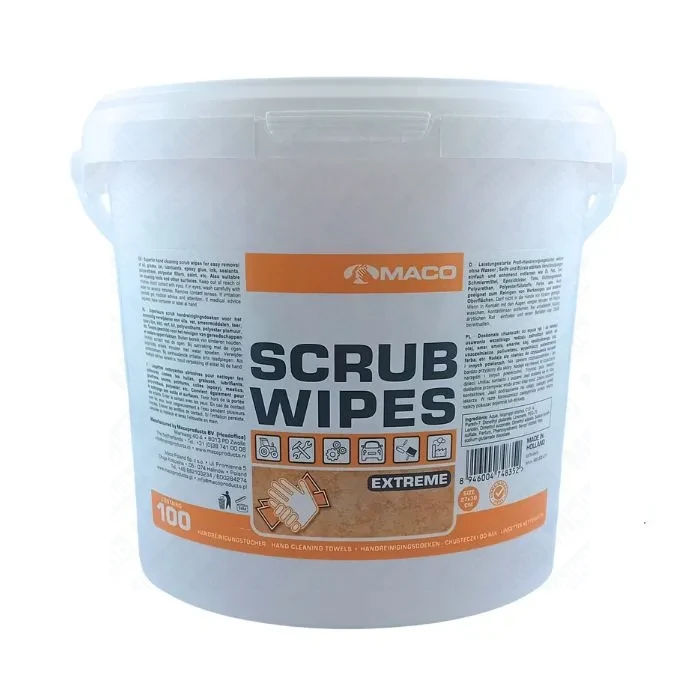 MACO SCRUB WIPES EXTREME – 100 wipes 27x30 cm – bucket