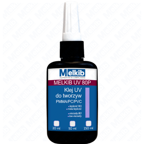 Melkib UV 80P 50ml single-component glue cured with UV light, fast action, excellent adhesion, impact resistance