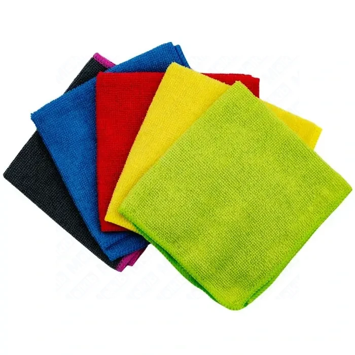 - 5 cloths per set in assorted colors: red, lime, blue, gray, yellow
