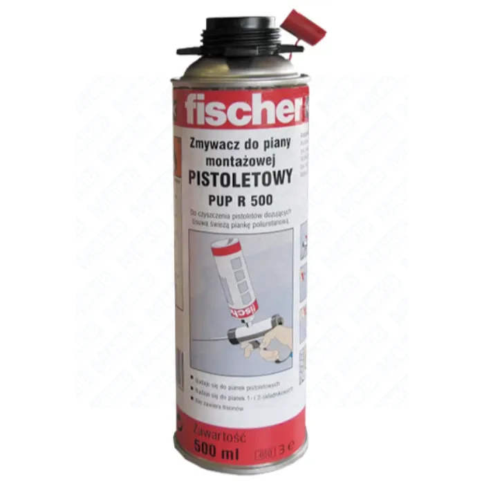 fischer PUP R 500 PU Foam Cleaner is an effective solvent for removing fresh polyurethane foam and degreasing non-absorbent surfaces. The can features a gun thread and a separate spray head, so you can clean both the foam gun and surfaces.