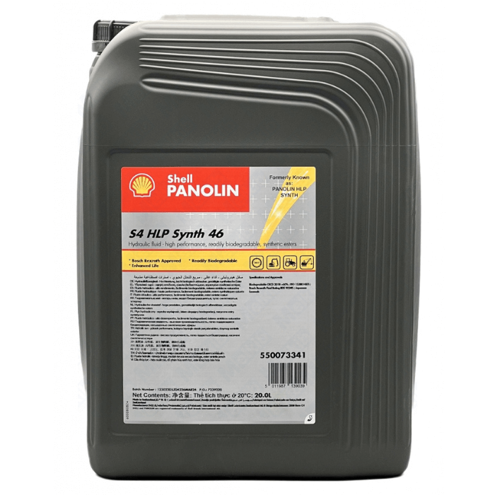 Shell PANOLIN S4 HLP Synth 46 hydraulic oil is a top quality biodegradable, synthetic oil based on saturated synthetic esters (HEES). The product was developed for applications in ecologically sensitive environments, such as construction, forestry and hydroelectric power plants. Thanks to innovative zinc-free additives, it ensures long equipment life, protection against wear and stability of operation in a wide temperature range, which allows it to be used at both low and high temperatures.