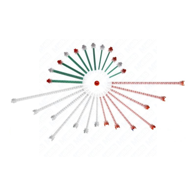 The Quadro static mixer is a tool designed for precise dosing of two-component adhesives in the F system with a capacity of 200ml and 400ml mixed in the proportions of 4:1 and 10:1. The nozzle is made of plastic, intended for single use, it can be easily mounted thanks to a simple locking system for two-component cartridges.