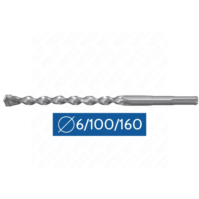 The SDS Plus II Pointer 6/100/160 is a precision hammer drill bit for concrete, masonry and natural stone. Two cutting edges, a centering tip and the Vario KVS Helix flute deliver fast drilling progress and long service life.