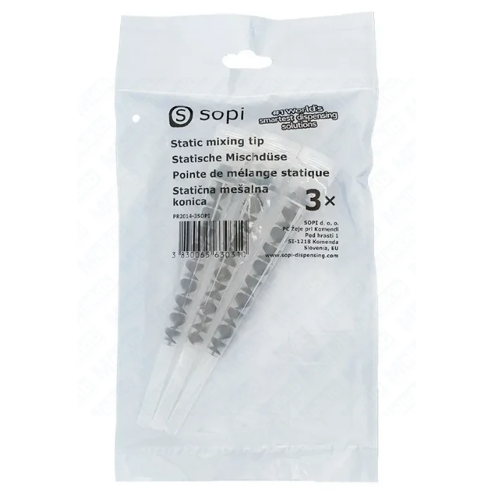 SOPI Pack Static mixing tip (3 pcs/bag) is a set of three static mixing tips designed to ensure thorough and even mixing of two-part (2K) materials during dispensing. The tips are designed to support smooth, laminar flow so the components are mixed sufficiently and homogeneously as they are dispensed from the cartridge. This is a practical solution wherever consistent mixing quality matters.
