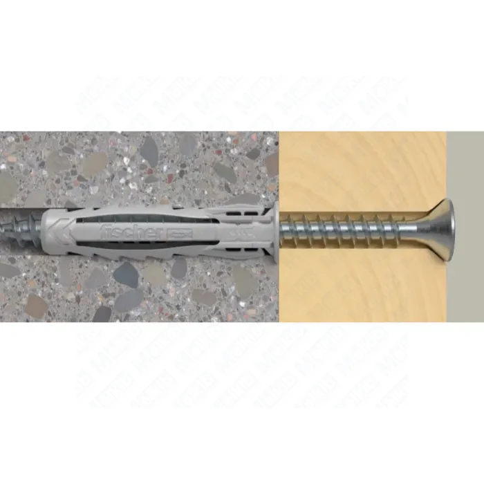 The SX Plus 8 × 40 S expansion plug with screw is a reliable fixing for solid and hollow building materials. Four-way expansion, pre-positioning wings and an anti-push-through rim ensure fast, safe installation. The box contains 50 plug + screw sets.