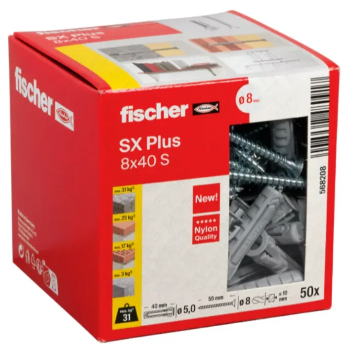 | Box contents | 50 × SX Plus 8×40, 50 × screw 5.0×55 |