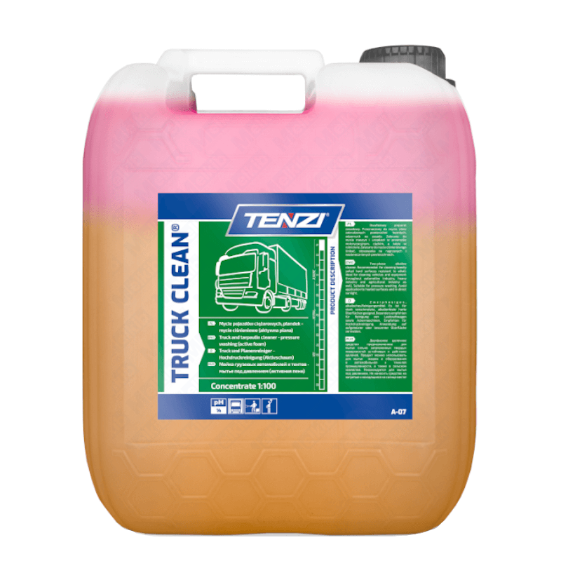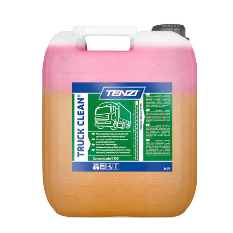 Truck Clean is a highly effective cleaning preparation whose main advantage is its strong active foam. It is ideal for the care of trucks and other specialized hard surfaces that are resistant to alkaline substances. The product is intended mainly for use in the automotive industry and agriculture, where it can remove even the most difficult dirt. Note: the product should not be used on surfaces exposed to high temperatures or direct sunlight.