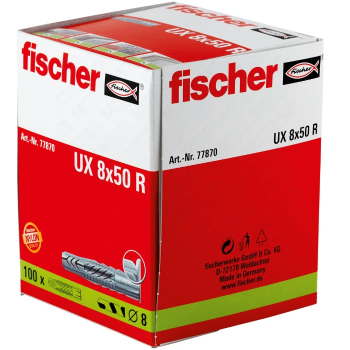 Universal nylon plug with collar UX 8 x 50 R for all substrates, fischer – 100 pcs