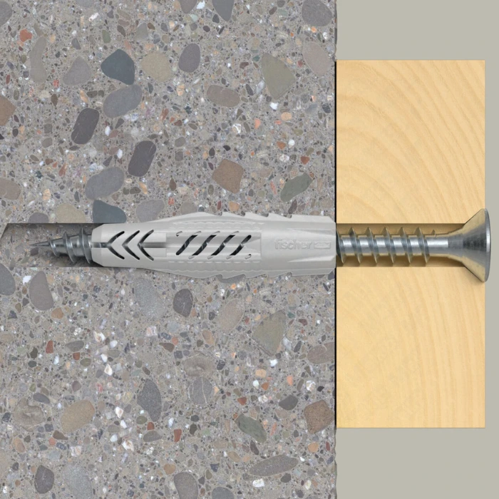 fischer Universal Plug UX 8 x 50 R long with collar is a reliable solution for installation in various base materials, even when the substrate is unknown.