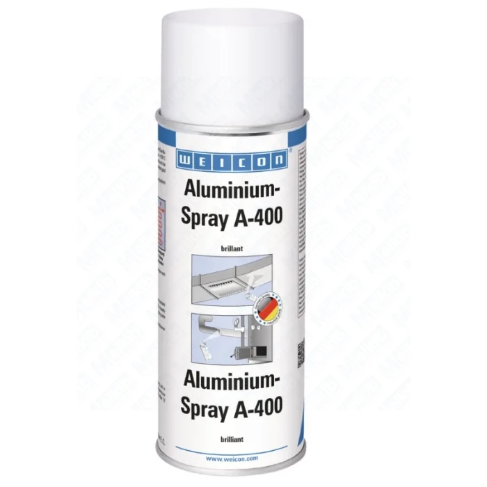 WEICON Aluminium Spray A-400 400 ml is a high-gloss protective and decorative coating for metal surfaces, resistant to weathering and many chemicals. It contains flake aluminium pigments with 99.5% purity for a durable appearance and corrosion protection.