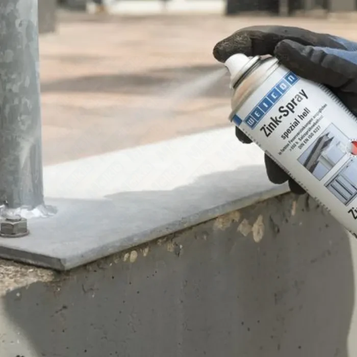 WEICON Zinc Spray bright grade 400 ml is a fast-drying light-shade zinc aerosol that creates a corrosion-protective film matching the look of fresh hot-dip galvanizing. It delivers long-term cathodic protection and excellent adhesion on new or repaired metal parts.