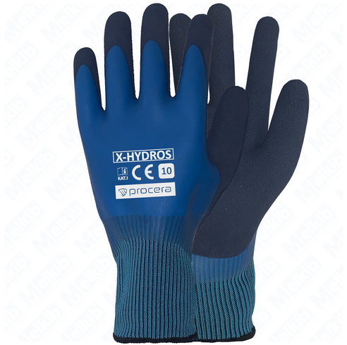 X-HYDROS protective, water-resistant working gloves, polyester-latex, elastic, blue (available sizes 9, 10)