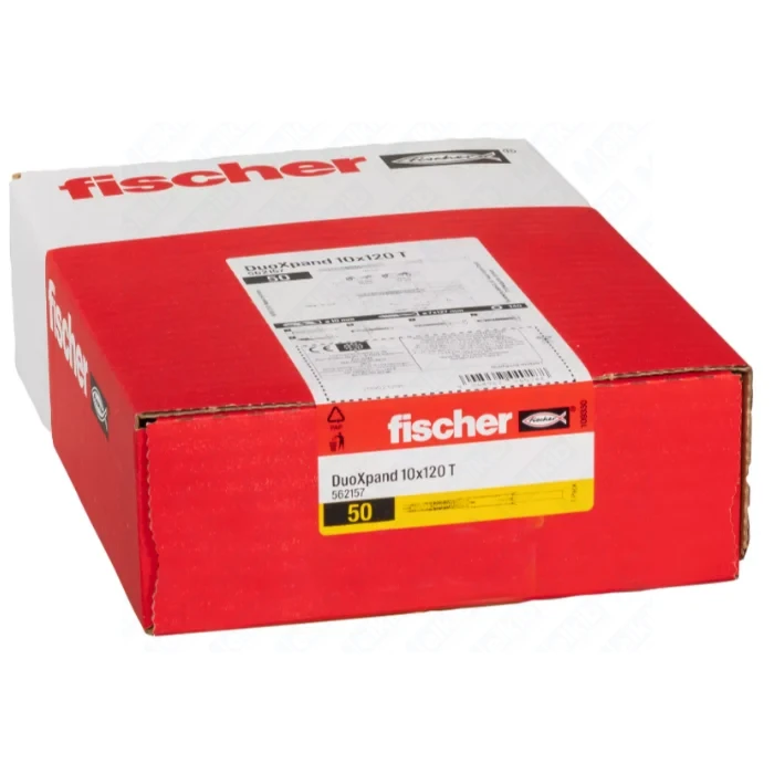 The fischer DuoXpand 10 × 120 T frame anchor with countersunk (conical) head screw is a reliable, universal fixing for concrete and masonry. Its lamella geometry and material mix deliver secure anchoring even in hollow substrates. The box contains 50 pieces with electro-galvanized steel screws.