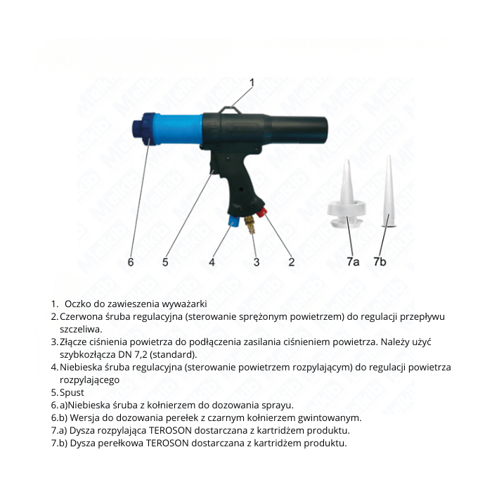 - Nakrętki mocujące kartusz (niebieska i czarna) do różnych trybów aplikacji