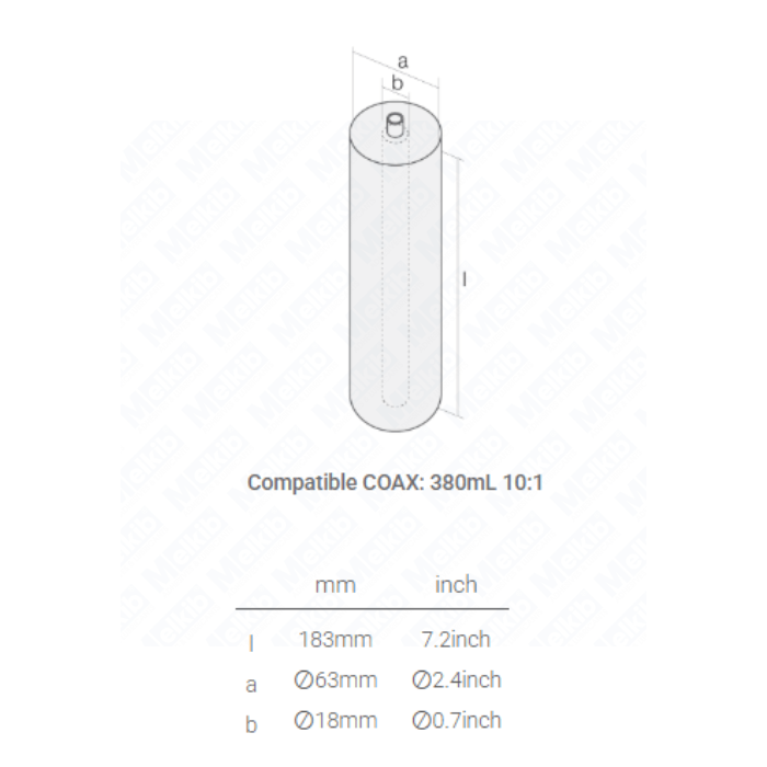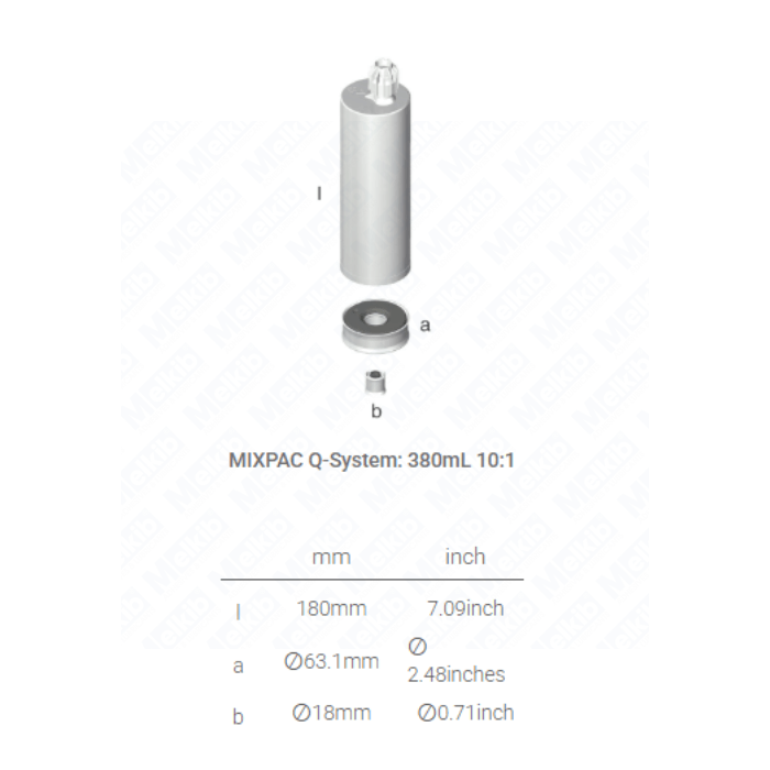 | Wymiary wkładu MIXPAC | l = 180 mm, a = Ø63.1 mm, b = Ø18 mm |