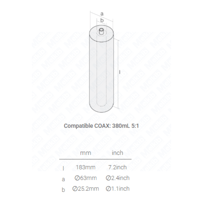 | Wymiary wkładu COAX 5:1 | l = 183 mm, a = Ø63 mm, b = Ø25.2 mm |