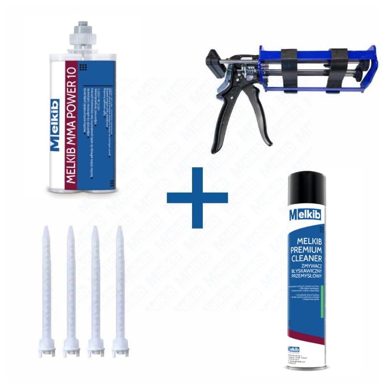 Melkib MMA Power 10 400ml beżowy 2-składnikowy klej metakrylowy do metalu, stali nierdzewnej, tworzyw, kompozytów, balustrad, bardzo wytrzymały, szybko się utwardza, odporny na uderzenia, warunki atmosferyczne