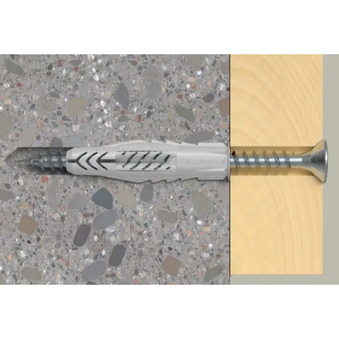 fischer Kołek uniwersalny UX 8 × 50 R S/25 z kołnierzem i wkrętem to pewne mocowanie do niemal każdego rodzaju podłoża. Specjalna geometria powoduje rozpieranie w materiałach pełnych oraz zapętlanie w pustakach i płytach, zapewniając wysoką nośność i bezpieczny montaż.