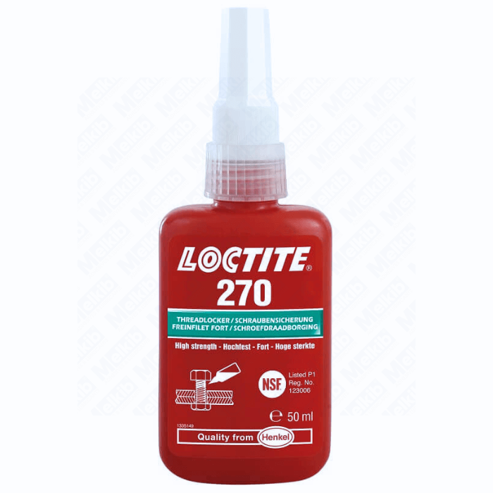Loctite 270 50ml zielony klej do zabezpieczenia gwintów metalowych śrub, wysoka wytrzymałość, zapobiega luzowaniu połączeń pod wpływem drgań, do trwałego zabezpieczenia, działa na wszystkich metalach, atest P1 NSF