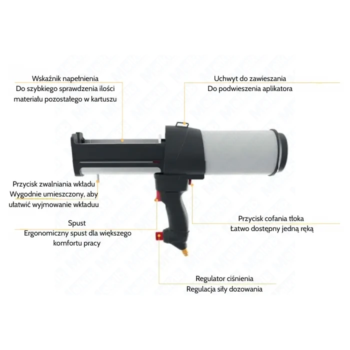 Pistolet pneumatyczny DP2X-200-10-25-01 COX do kartuszy 250ml 10:1 precyzyjne dozowanie, ergonomiczna konstrukcja