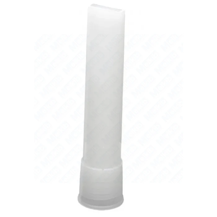 Melkib Flat bead nozzle 2 × 20 mm to płaska dysza kartridżowa do aplikacji szerokiej wstęgi materiału. Służy do nakładania klejów, past, żeli, smarów, silikonów, uszczelniaczy, żywic epoksydowych i innych mas z kartuszy lub worków foliowych. Dysza podaje wstęgę o grubości ok. 2 mm i szerokości 20–22 mm, a gwint M15 umożliwia stosowanie jej z metrycznymi komponentami gwintowanymi M15.
