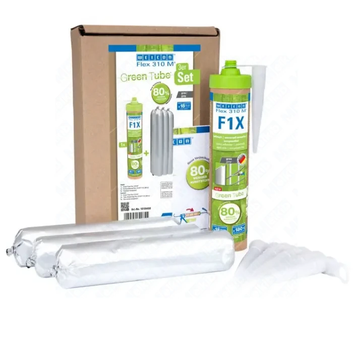 WEICON Set Green Tube Flex 310 M F1X grey, szary elastyczny klej i uszczelniacz MS polimer do metalu, tworzyw sztucznych, drewna, szkła i kamienia, wysoka przyczepność początkowa