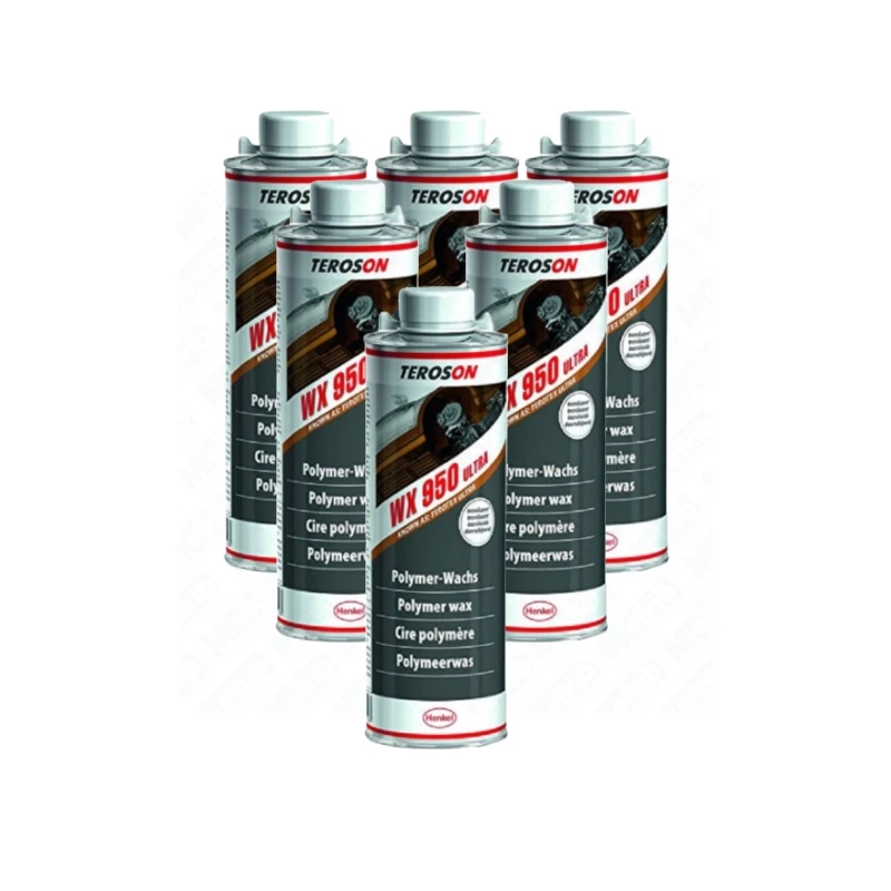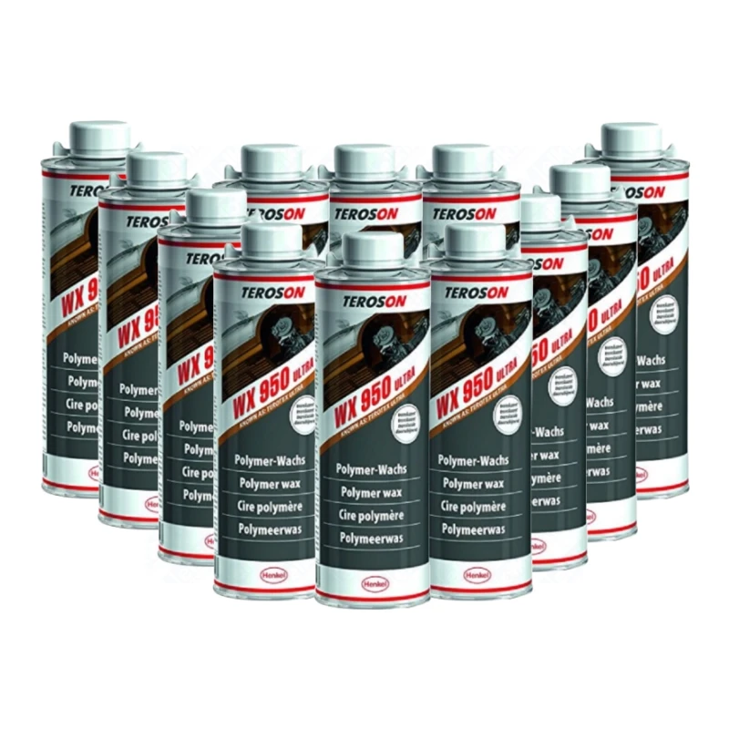 TEROSON WX 950 to rozpuszczalnik zawierający beżowy środek antykorozyjny na bazie wosku i polimerów o stałej zawartości ok. 70 %. Produkt ma doskonałą ciągliwość i zachowanie kreppa. Optymalna ochrona przed korozja zostanie osiągnięta już na warstwie o grubości 0,5 mm. Aplikacja TEROSON WX 950 będzie czysta i wykazuje niską formę mgiełki. Ponieważ TEROSON WX 950 jest oparty na polimerach i woski możliwe jest powlekanie powierzchni bez pokrycia części funkcjonalne. Sucha powłoka jest mocna w dotyku, ale lekko lepka. materiał ma właściwości samoregenerujące.